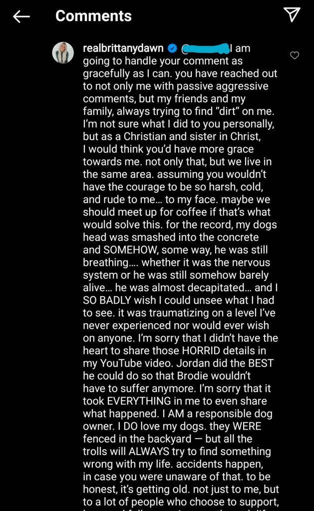 Brittany Dawn has understandably gotten backlash yet, similar to Nikki, seems confused as to why netizens are upset. But it’s one thing to post about your pet dying, an entirely different thing to make a video 8.5 seconds later profiting off that death.