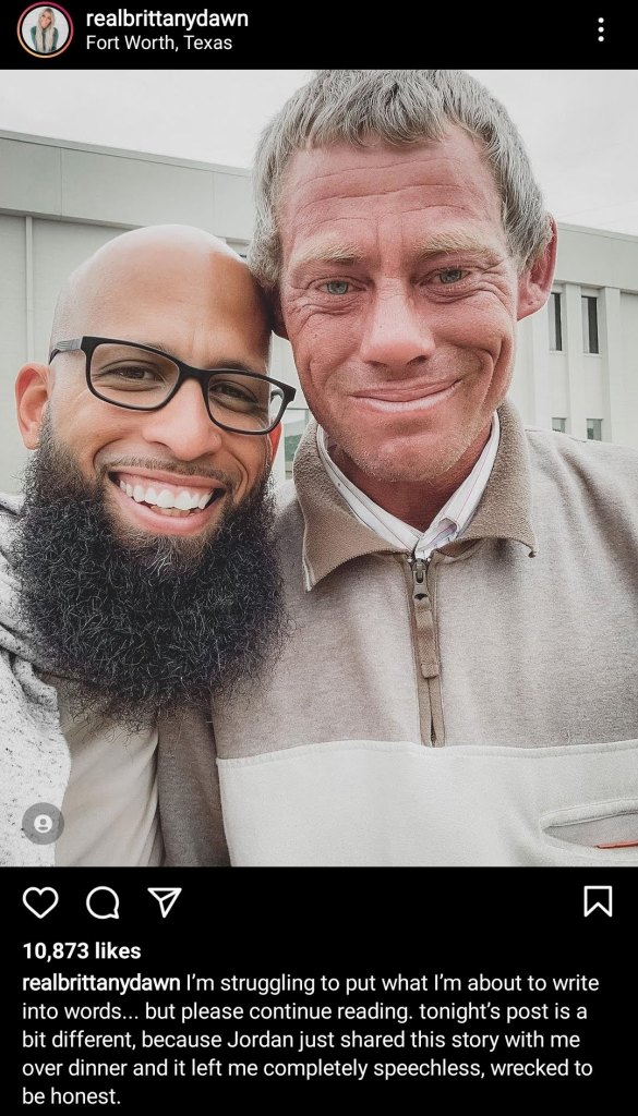 However, the most shady thing she’s done recently involved a homeless man, James, pictured on the right. Apparently, James (who was homeless and recovering from addiction) showed up at her church one day to tithe his last dime and Brittany began a very visible campaign to help him, financially and spiritually.
